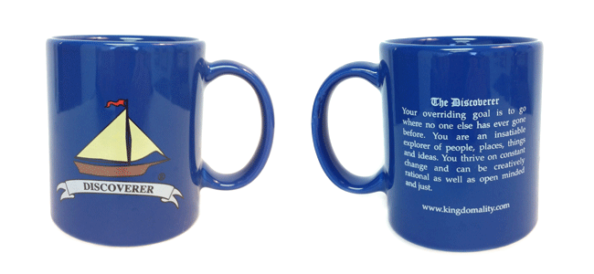 The front of the mug shows off your own Kingdomality shield in full color artwork. The back says: